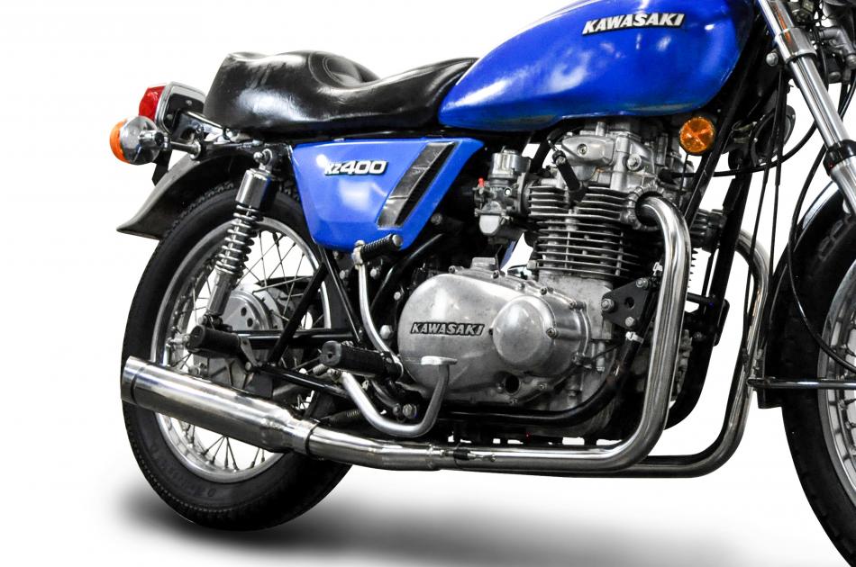 KAWASAKI KZ 400 A D S 1974-1978 410MM SLASH CUT STAINLESS STEEL EXHAUST SYSTEM