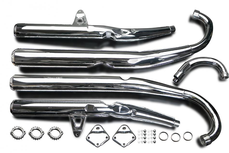 The GT750M was the 4th GT750 Model. The standard exhaust had lost the balance pipes on the headers. Delkevic offer OEM style or expansion chambers.